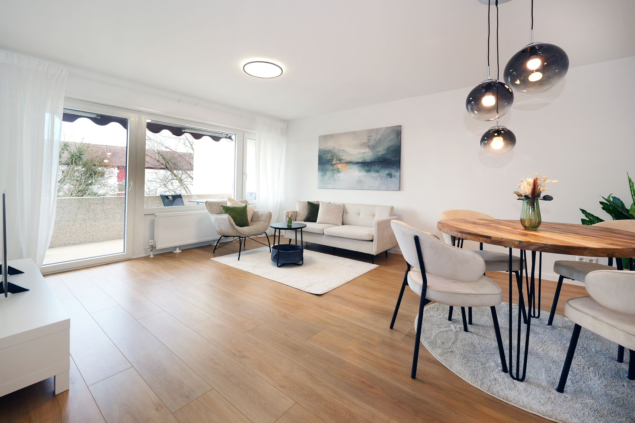 Vor dem Home Staging wirkten die frisch renovierten Wohnungen zwar sauber und modern, aber noch kühl und wenig einladend. Nach dem Home Staging verwandelten sie sich in ein stilvolles und wohnliches Zuhause, das sofort Emotionen weckt und den Interessenten ein echtes Raumgefühl vermittelt – ideal, um den Verkauf erfolgreich voranzutreiben.